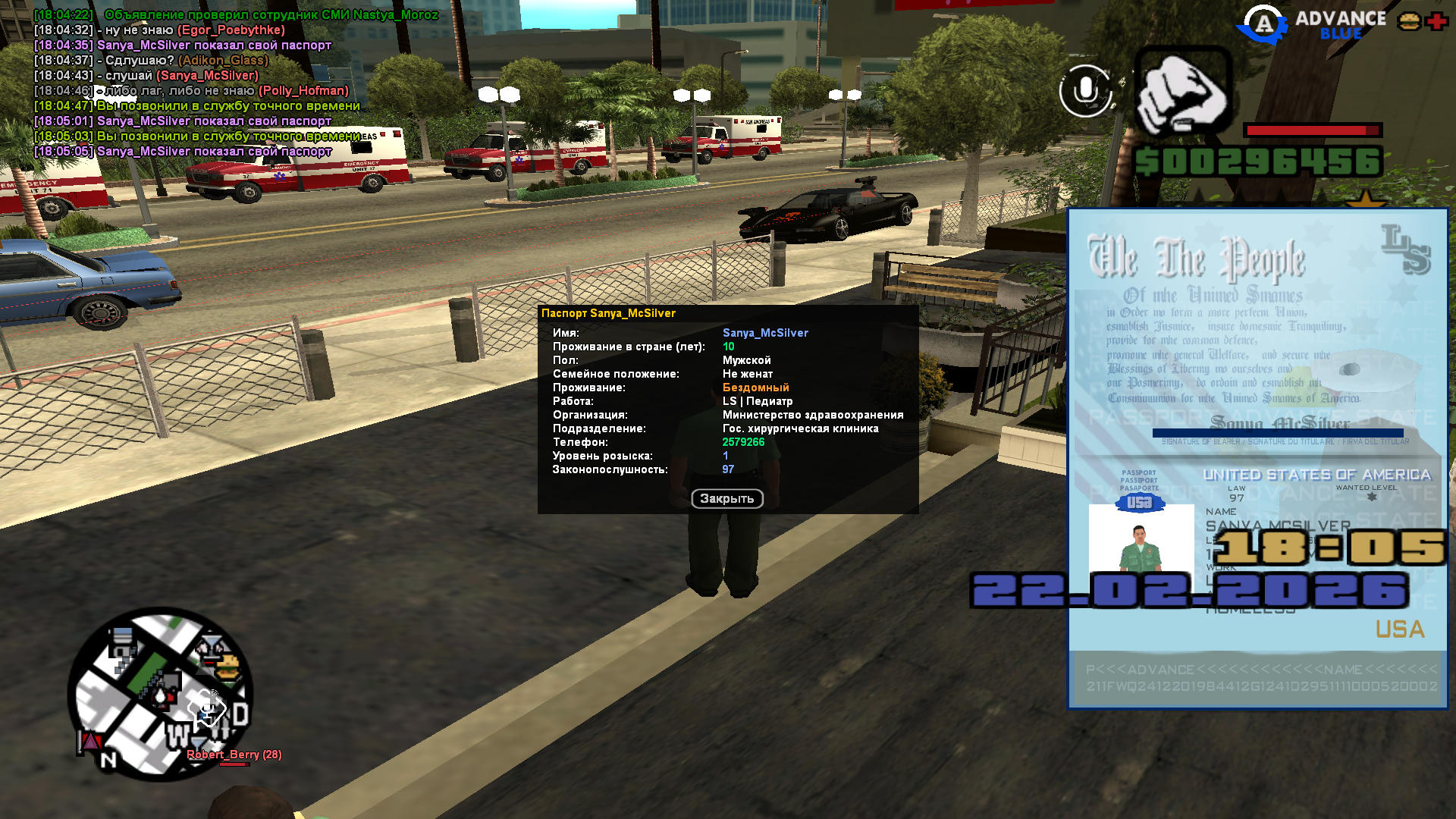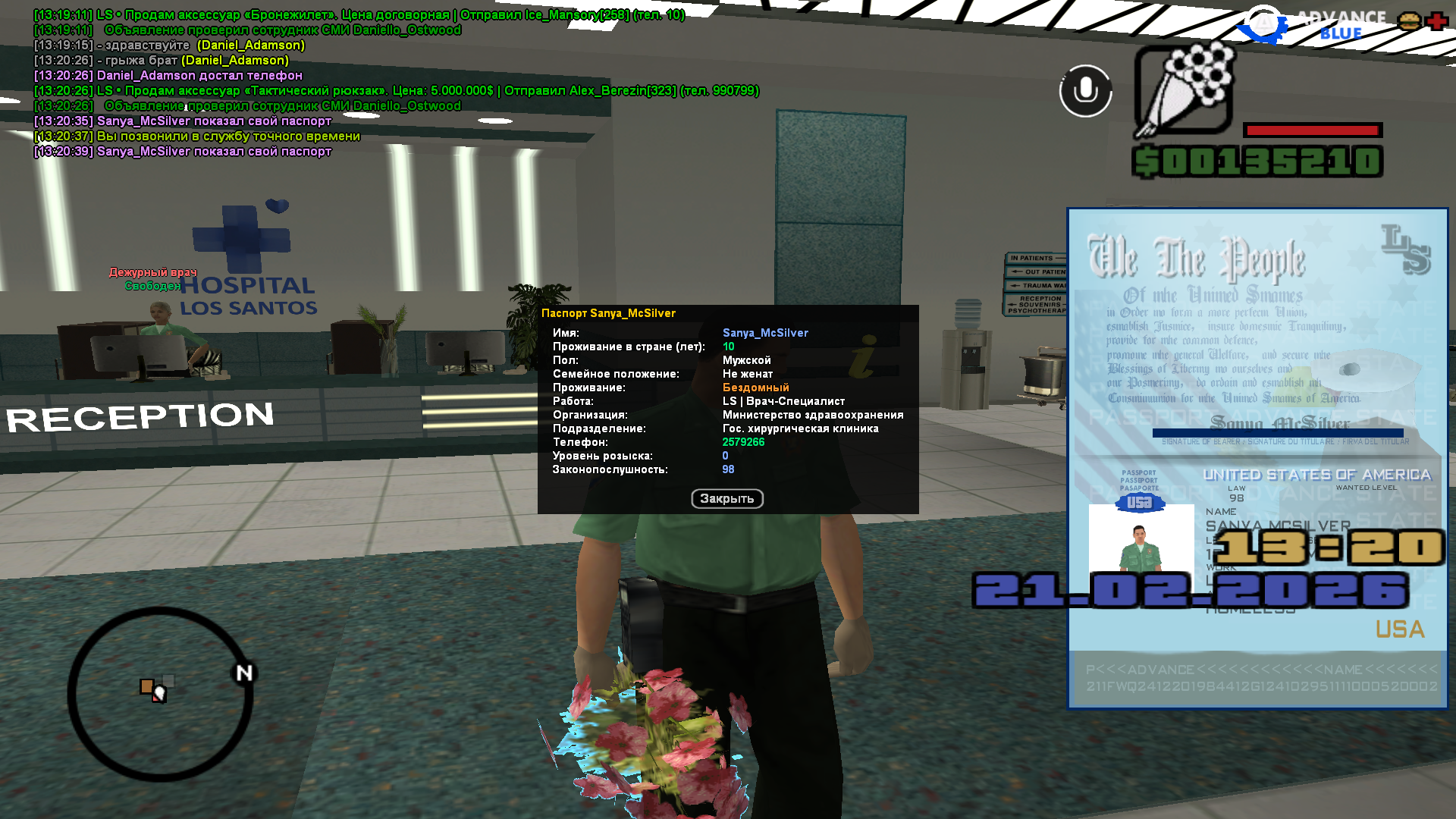 Я сотрудник Государственной хирургической клиники Los-Santos Sanya McSilver выполнял свои должностные обязанности.