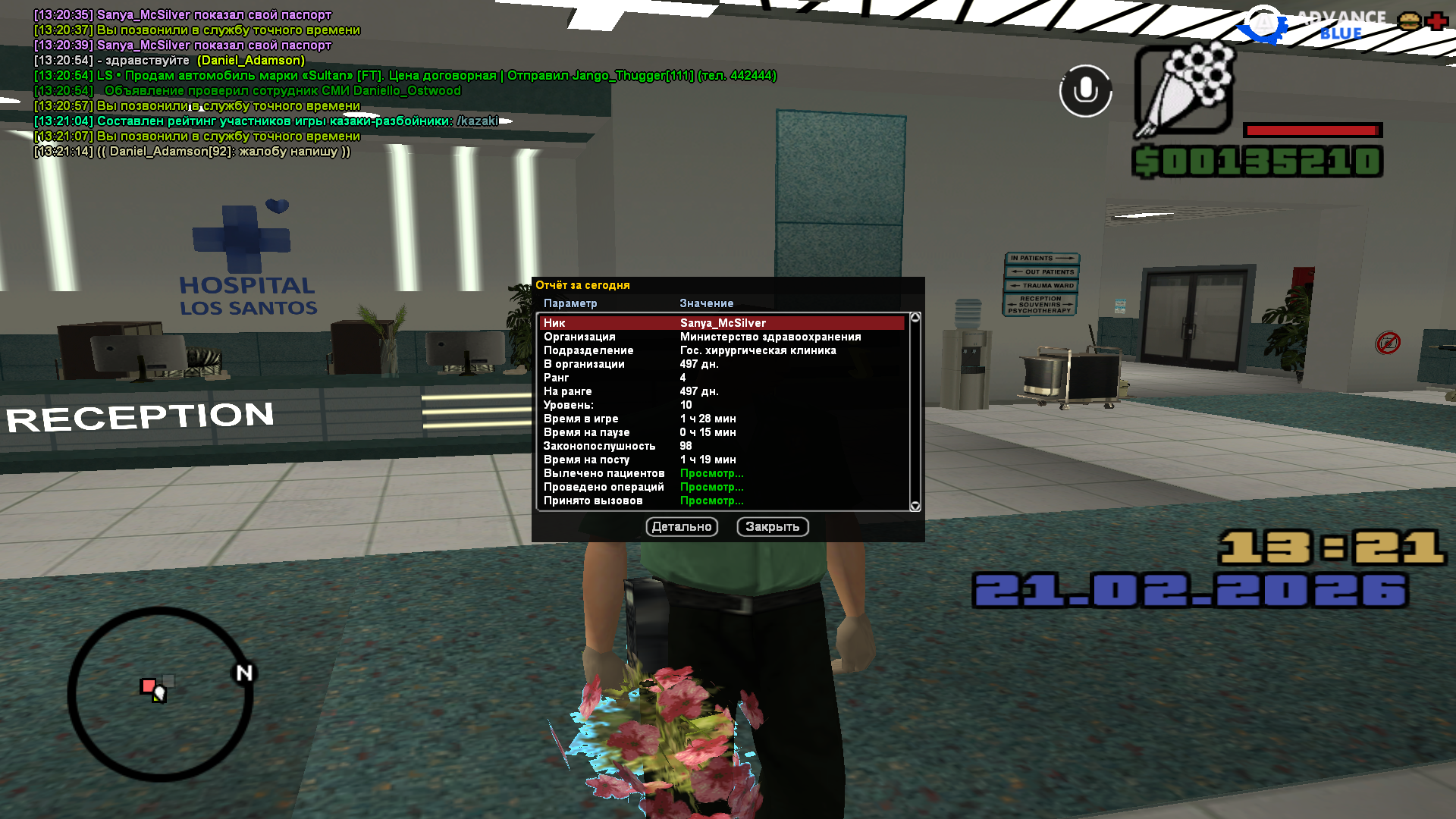 Я сотрудник Государственной хирургической клиники Los-Santos Brain Quienaxi выполнял свои должностные обязанности.