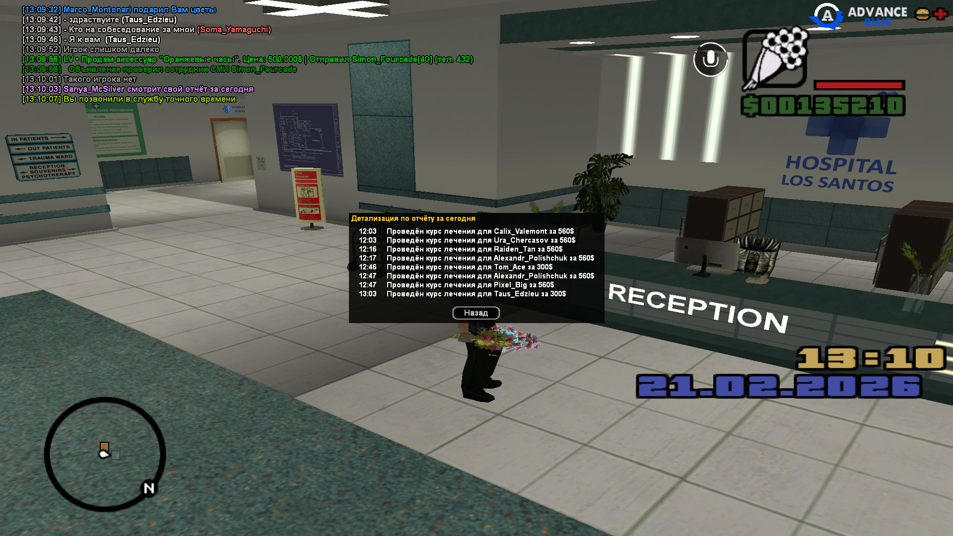 Я сотрудник Многофункционального медицинского центра ш.Los-Santos [Egor_Poebythke ] выполнял свои должностные обязанности.