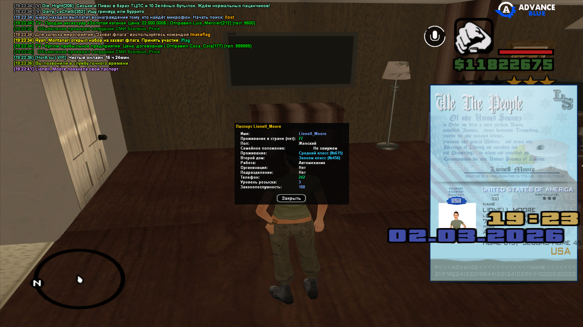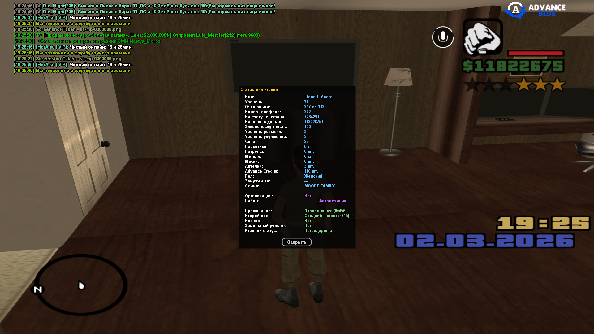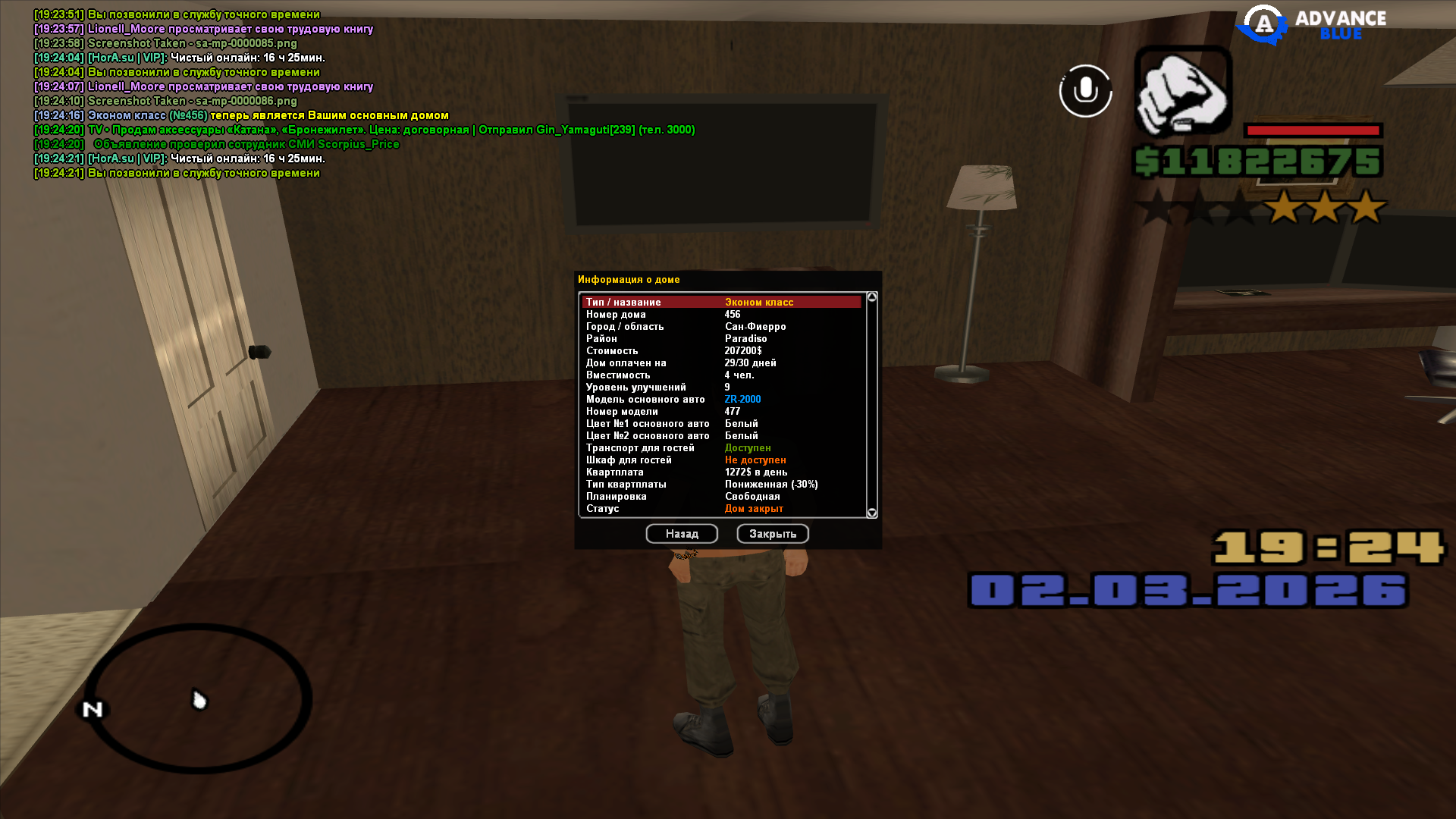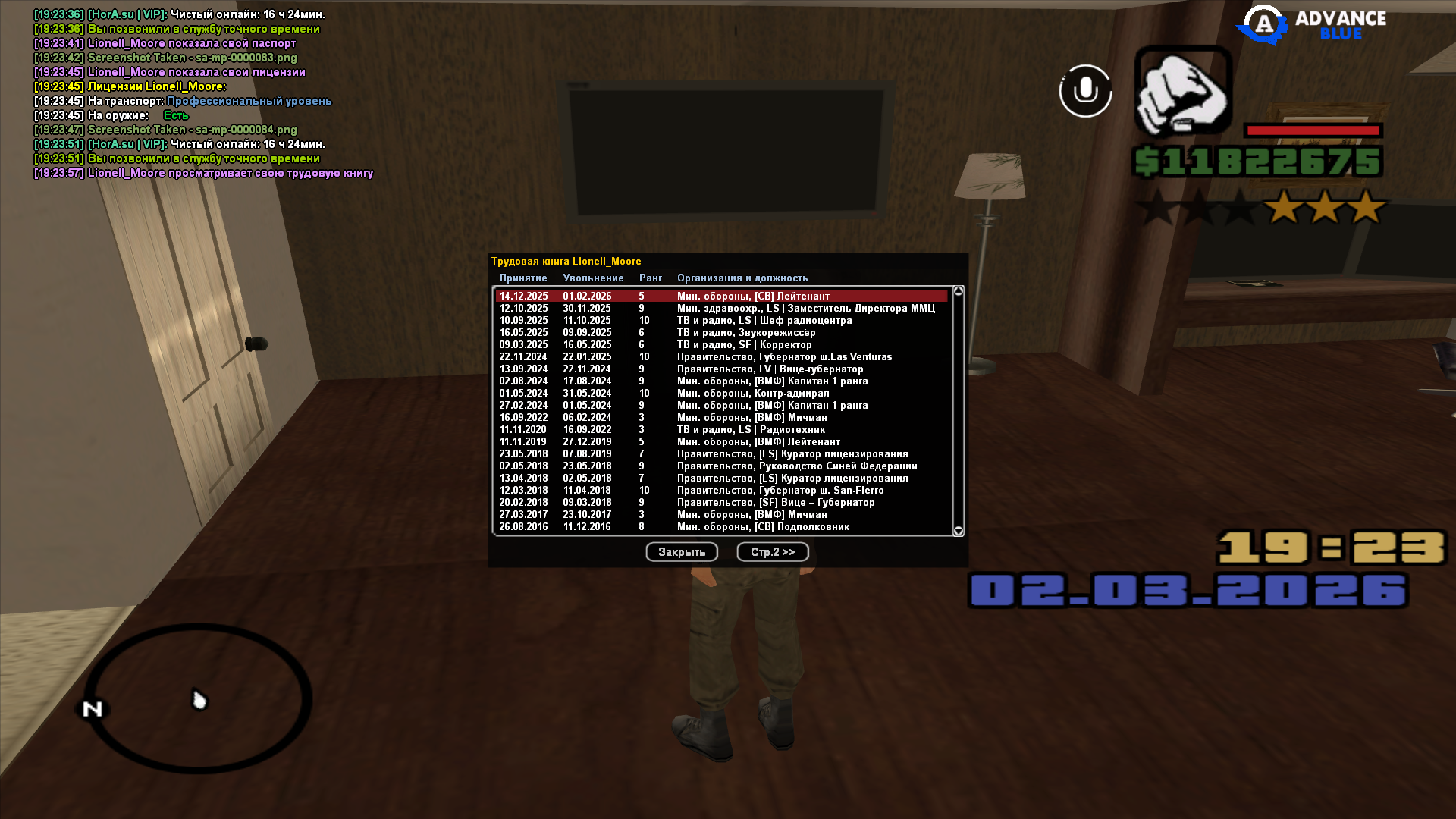 6) Опыт игры на проекте Advance-Rp (дней/недель/месяцев/лет):