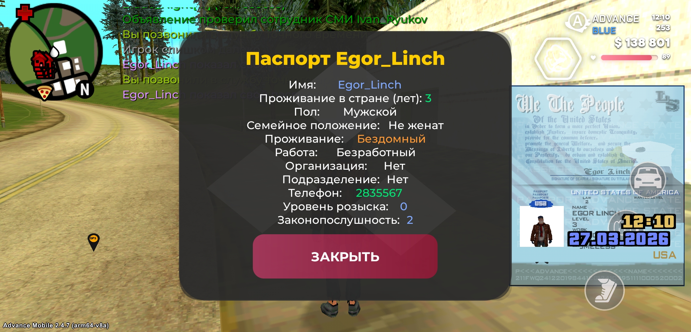 Я, гражданин Синей Федерации Edgar Casual, оставляю заявление на подписание контракта с Министерством Обороны, подразделением Военно-воздушных-сил. С критериями и условиями контрактной службы, а также с уставом Министерства Обороны ознакомлен. К своему заявлению прикрепляю документы [/pass, /lic, /skill c /c 60]:https://disk.yandex.ru/d/_dX7spRckA9IRQ