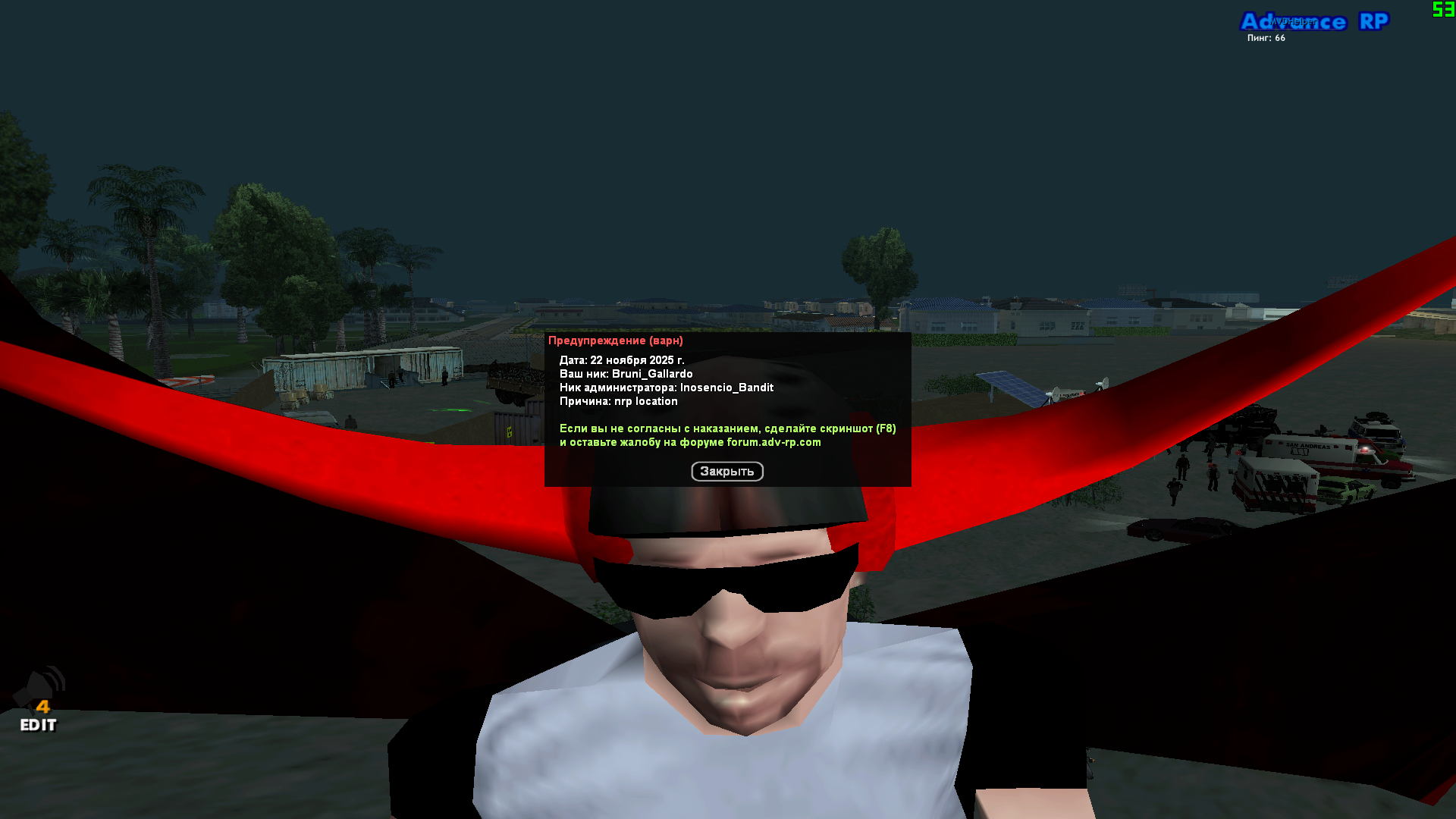 3) Суть жалобы - нужен был скрин для газеты, о ЧП. Но т.к функционал у /selfie 1 только 1 ракурс, поставил три объекта локации которые никому не мешали, и выбирал ракурс. Попросил в репорт не мешать, ГС СМИ ответил - хорошо. Делаю скрин, этот поц меня варнит ....