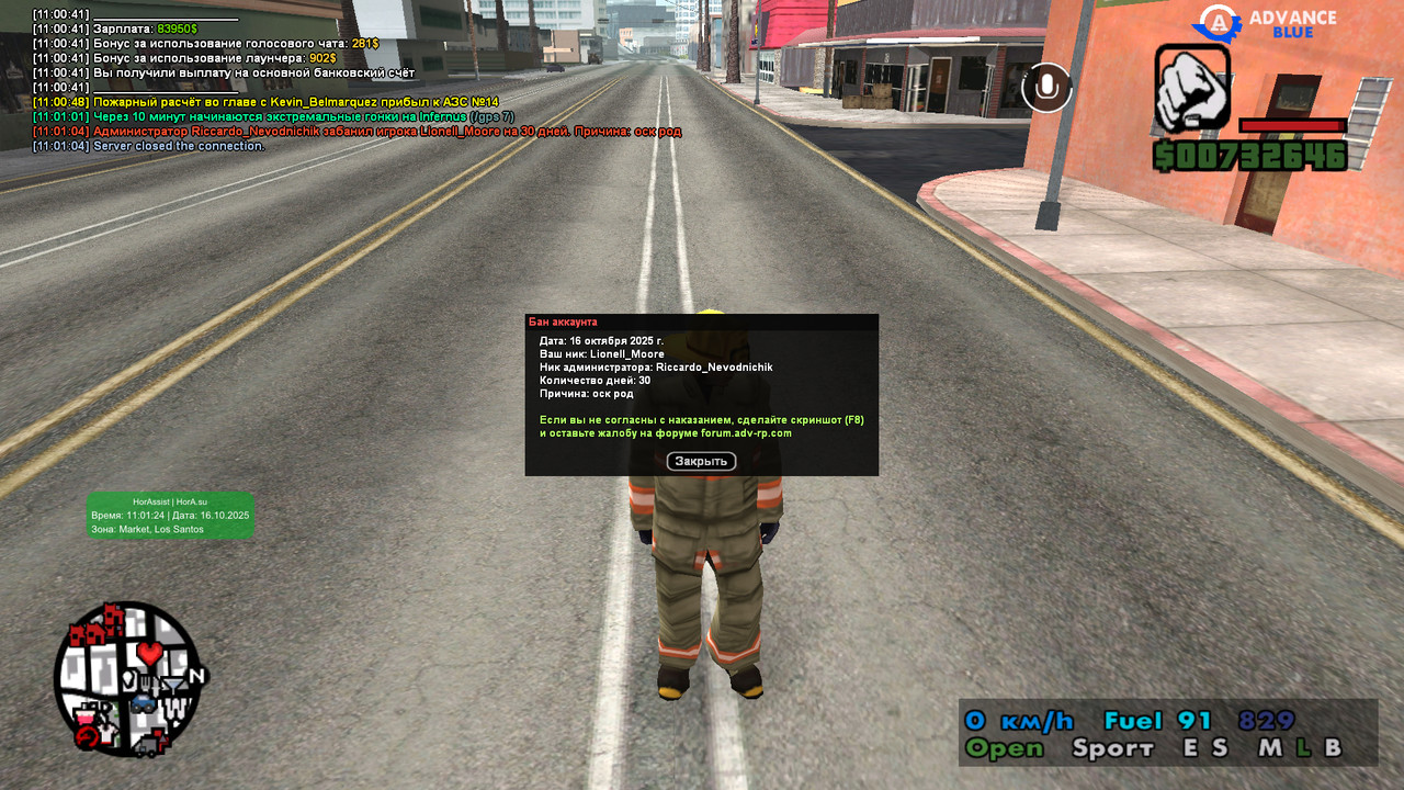 3) Суть жалобы - катал пожарника, этот невнимательный человек(не буду материться), видимо ошибся id и дал мне 30 дней бана якобы за оск. родных.