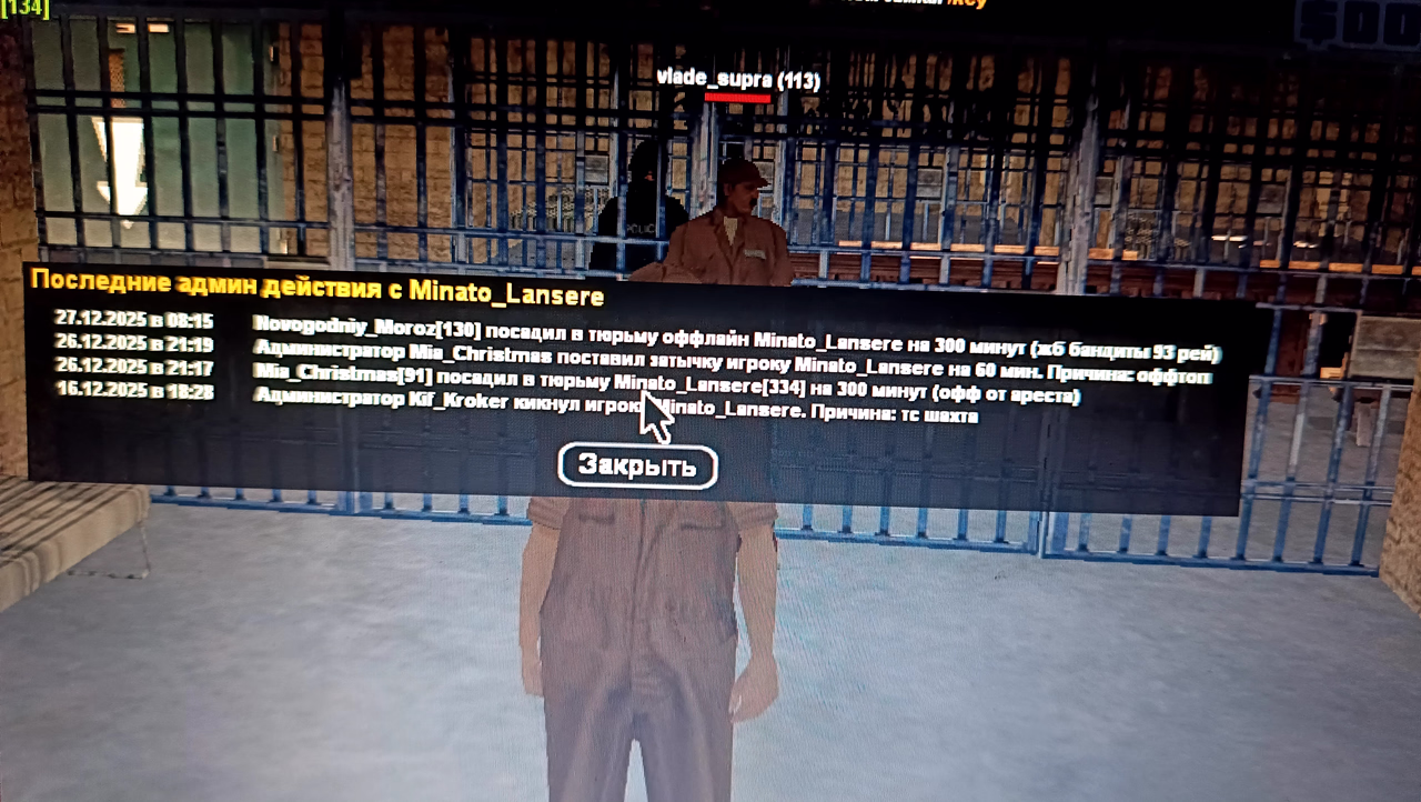 суть жалобы: вчера 26.12.25 меня посадили в деморган на 300 минут за уход от рп,я отсидел и на утро снова в деморгане на 300 минут по той же причине,я зашел на форум и увидел что игрок кинул жалобу на меня за уход от рп,хотя он видел как меня посадил за это адм,и кинул жб.
