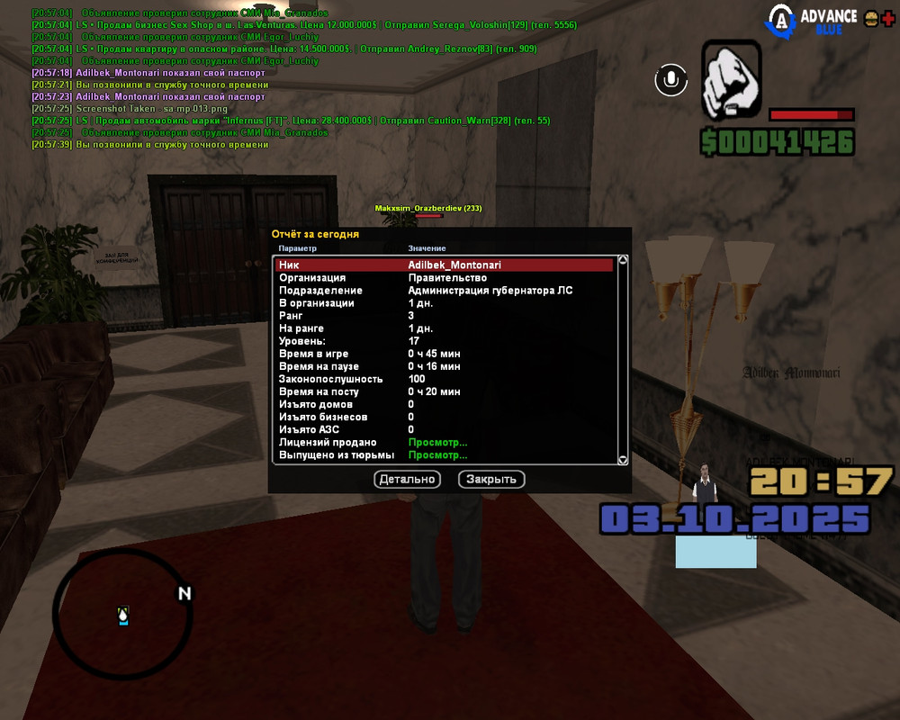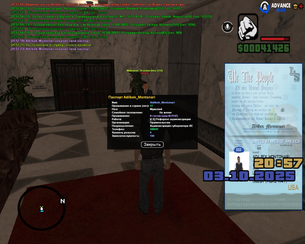От: Сотрудника Администрации штата Los Santos Adilbek Montonari