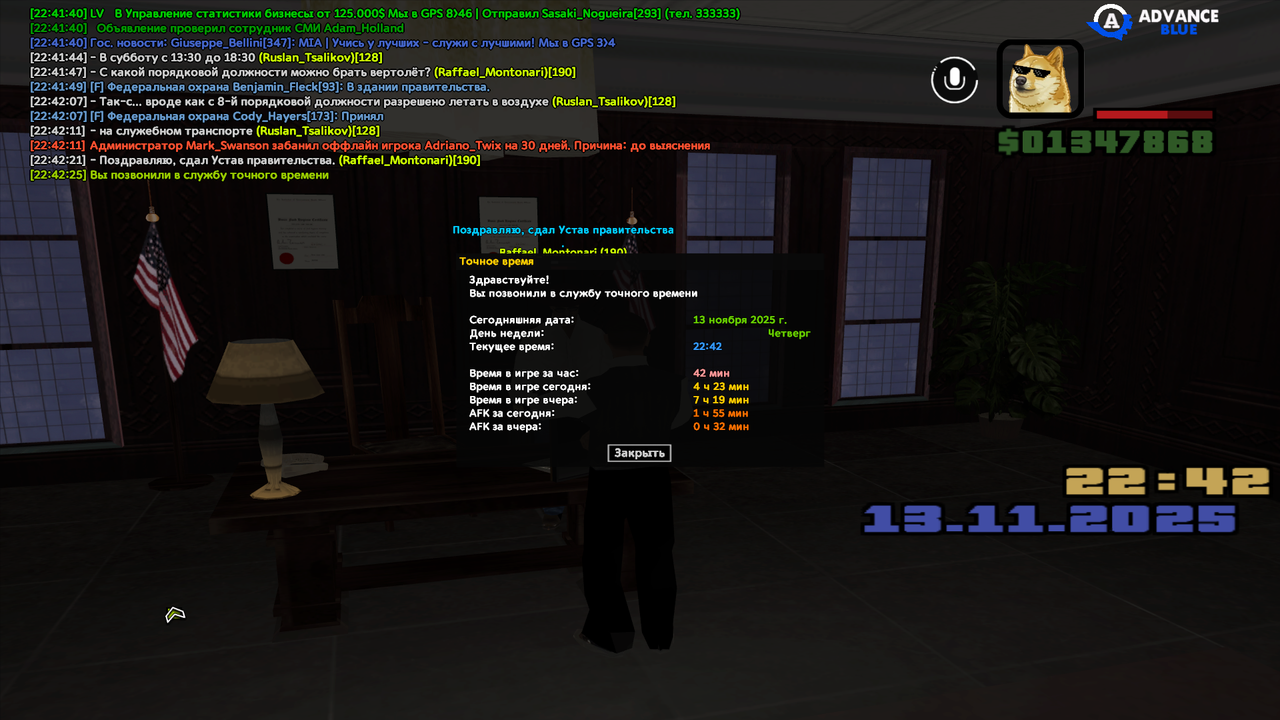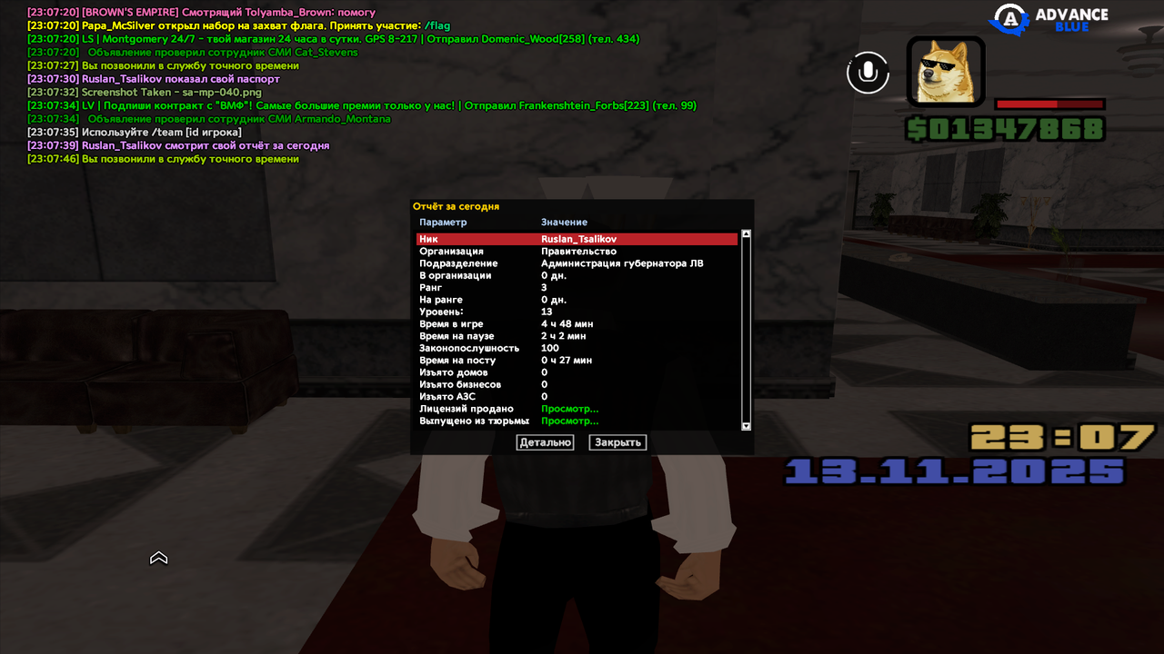 Старший лицензёр [7] | Повышение происходит на усмотрение губернатора либо путем прохождения онлайн - собеседования. | 4 дня |
