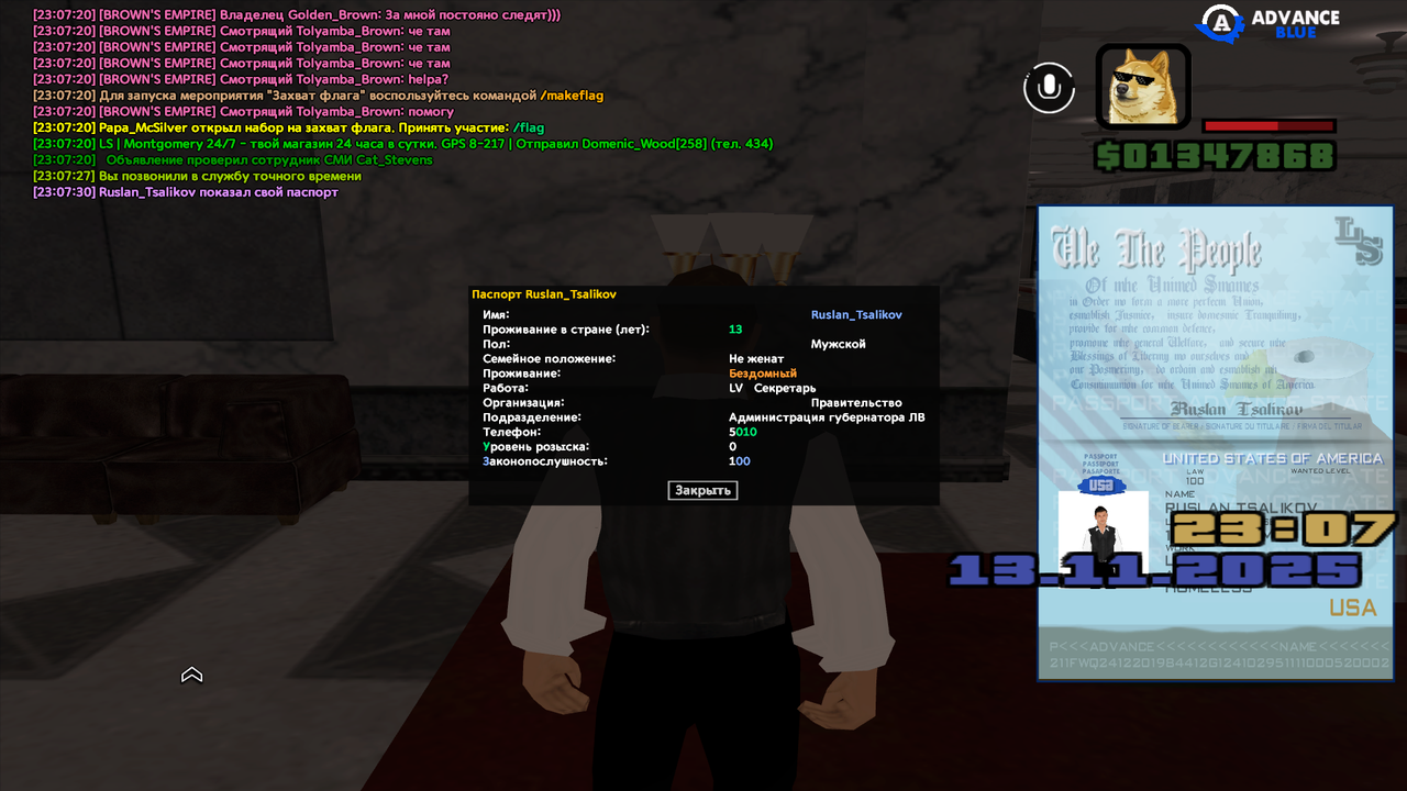 Действующему Губернатору штата Лас-Вентурас Raffael Montonari От сотрудника Администрации Лас-Вентурас [Имя Фамилия] Заявление. Я, сотрудник Администрации штата Лас-Вентурас [Имя Фамилия], занимающий должность [Ваша занимаемая должность], прикрепляю свою отчётную деятельность. К заявлению прикладываю копии необходимых документов: 1. Ксерокопия паспорта (/pass + /c 60): 2. Электронный отчёт (/team + /c 60): 3. Доказательства проделанной работы (/c 60): Дата: Подпись: |
