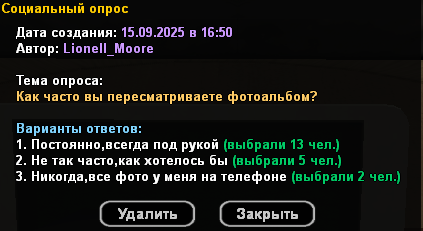 4) Предыстория либо же полезная информация: Сидя в своём кабинете и размышляя о жизни,я подумал провести опрос среди граждан по поводу фотоальбома,ведь в современном мире мало кого встретишь,у кого он сохранился. И я дал задание своим сотрудникам его провести,отклик получился неплохой