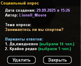 1) Кто куратор проведения социологического опроса (имя фамилия сотрудника, который создаёт и выкладывает соц. опрос): Lionell Moore