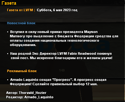Fabio Readwood мы живем эту жизнь, будто гта самп Модераторы раздела Сообщения 320 Реакции 18 616 29.04.2023 #65 https://i.*******/V8kjw.png