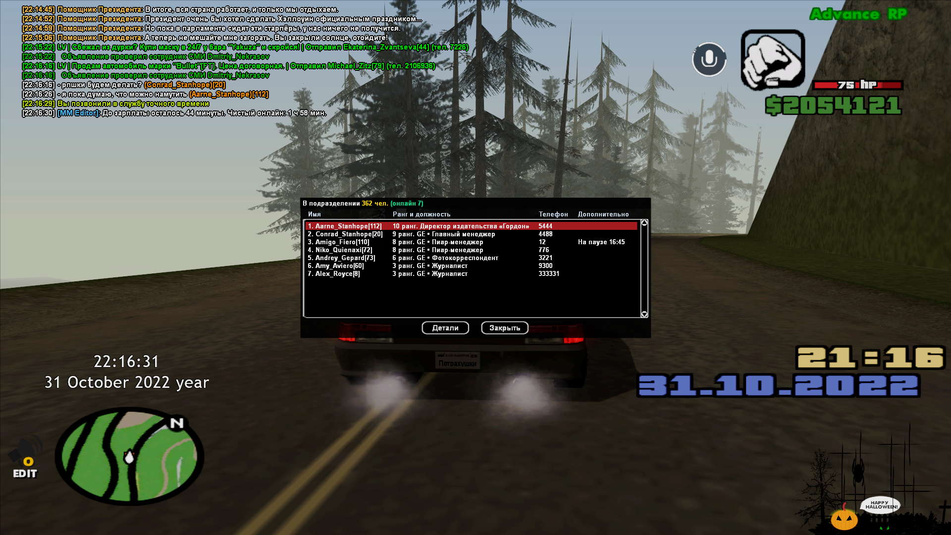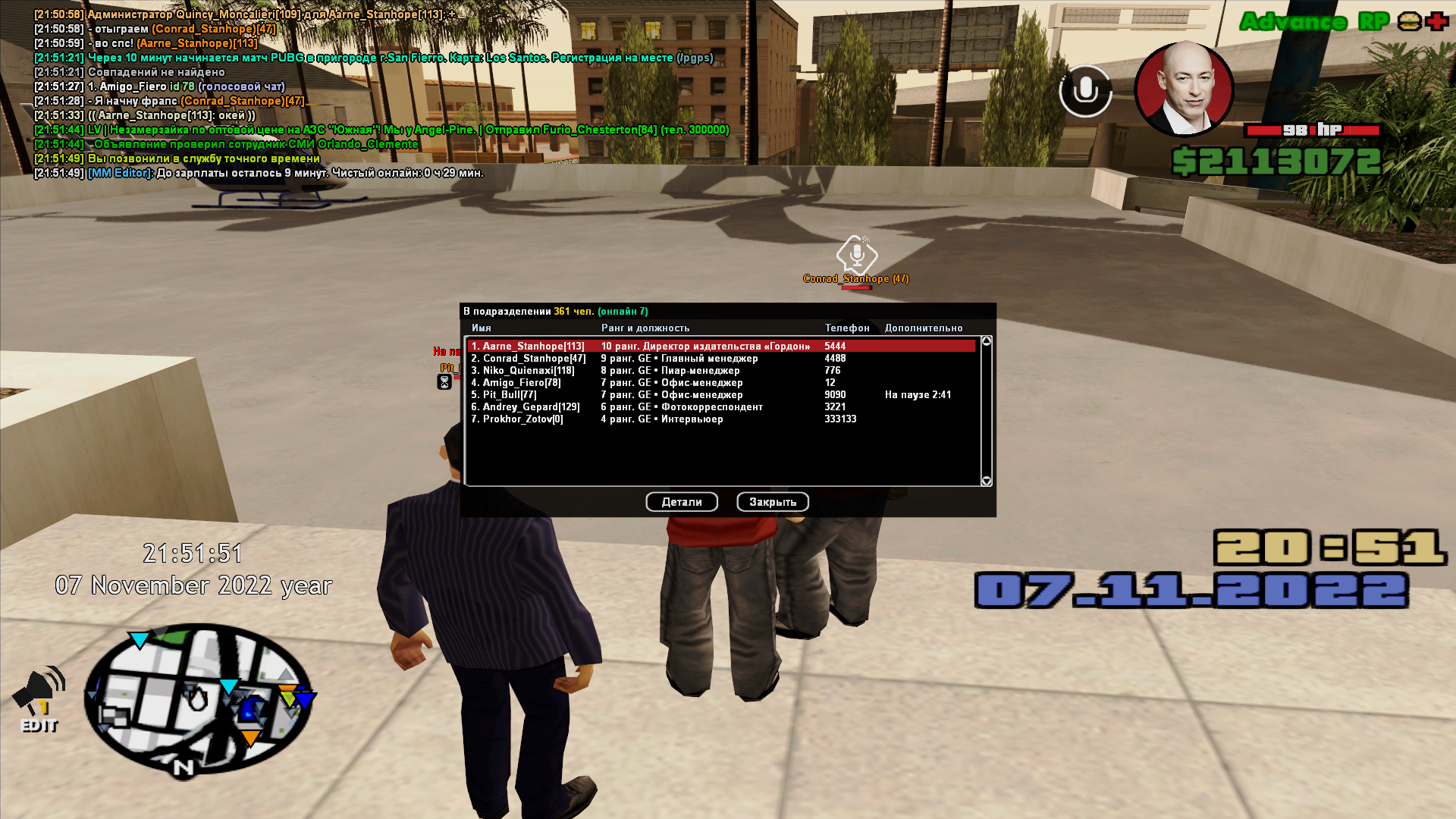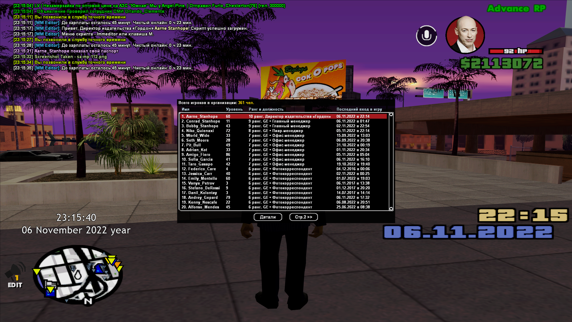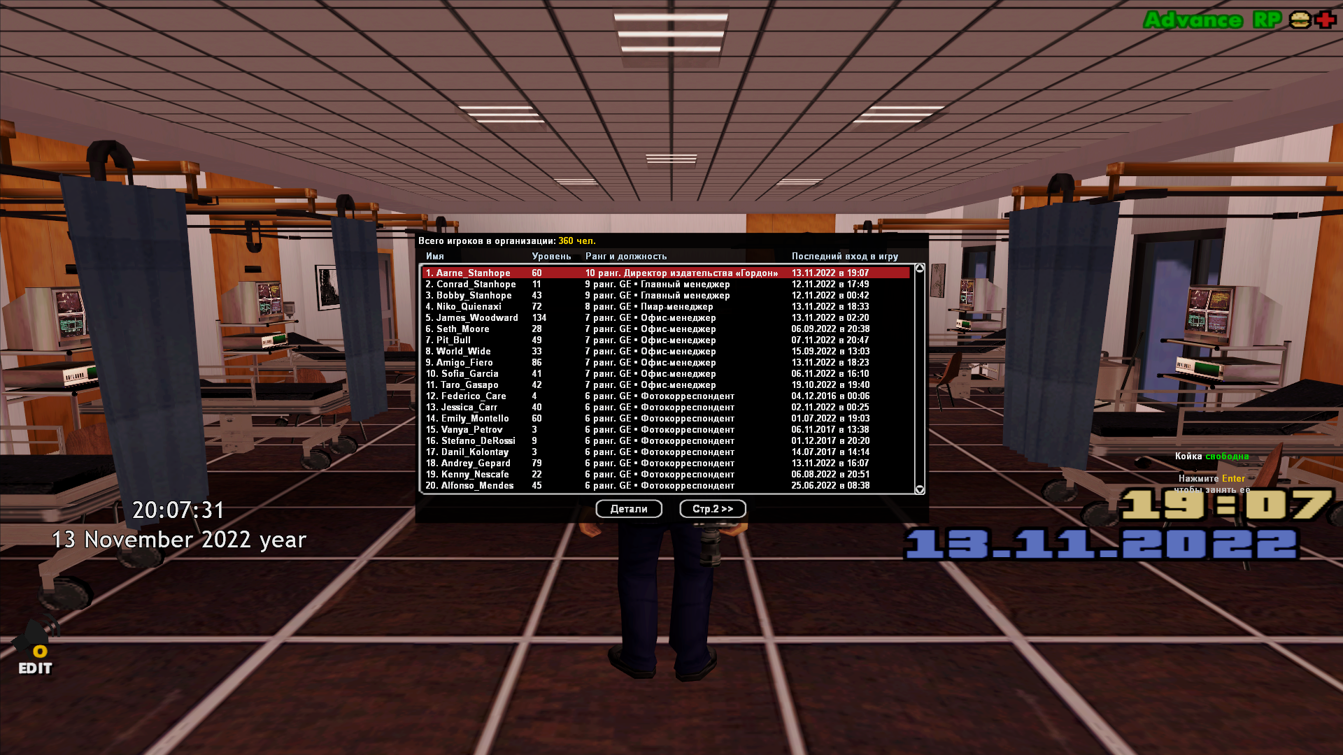 5. Список сотрудников (/showall по убыванию ранга + /c 060):