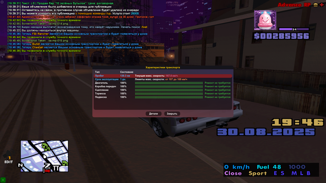 4. Фиксация имеющего транспорта (/home + /c 60): *Click*