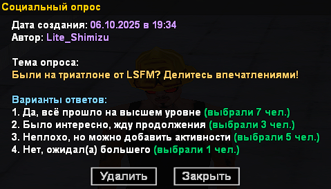 3) Тема социологического опроса: Были на триатлоне от LSFМ? Делитесь впечатлениями!
