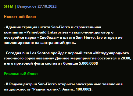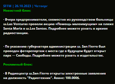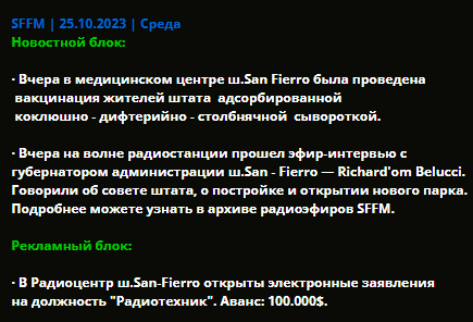 SFFM | Пресс–служба штата San Fierro (faq по созданию и одобрению газет, архив газет).